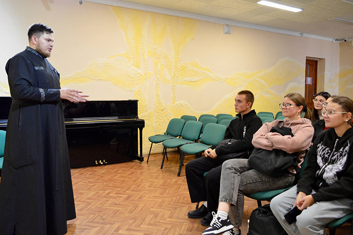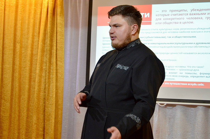 Встреча прошла в формате открытого диалога, студенты не стеснялись задавать вопросы, делиться своим видением и даже высказывать сомнения. Отец Павел доступно и аргументированно рассказал студентам о том, что подразумевается под традиционными ценностями, подчеркнув их неразрывную связь с нравственностью, духовностью, историей и культурой нашего народа. Он говорил о важности таких понятий, как семья, уважение к старшим, патриотизм, ответственность, милосердие, долг.