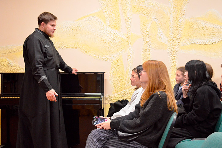 16 октября состоялась очередная встреча со студентами групп 40, 49, 14 и 19. Лекцию провел иерей Павел Говоров, который вместе со слушателями провел глубокий анализ различных аспектов понятия ценностей.