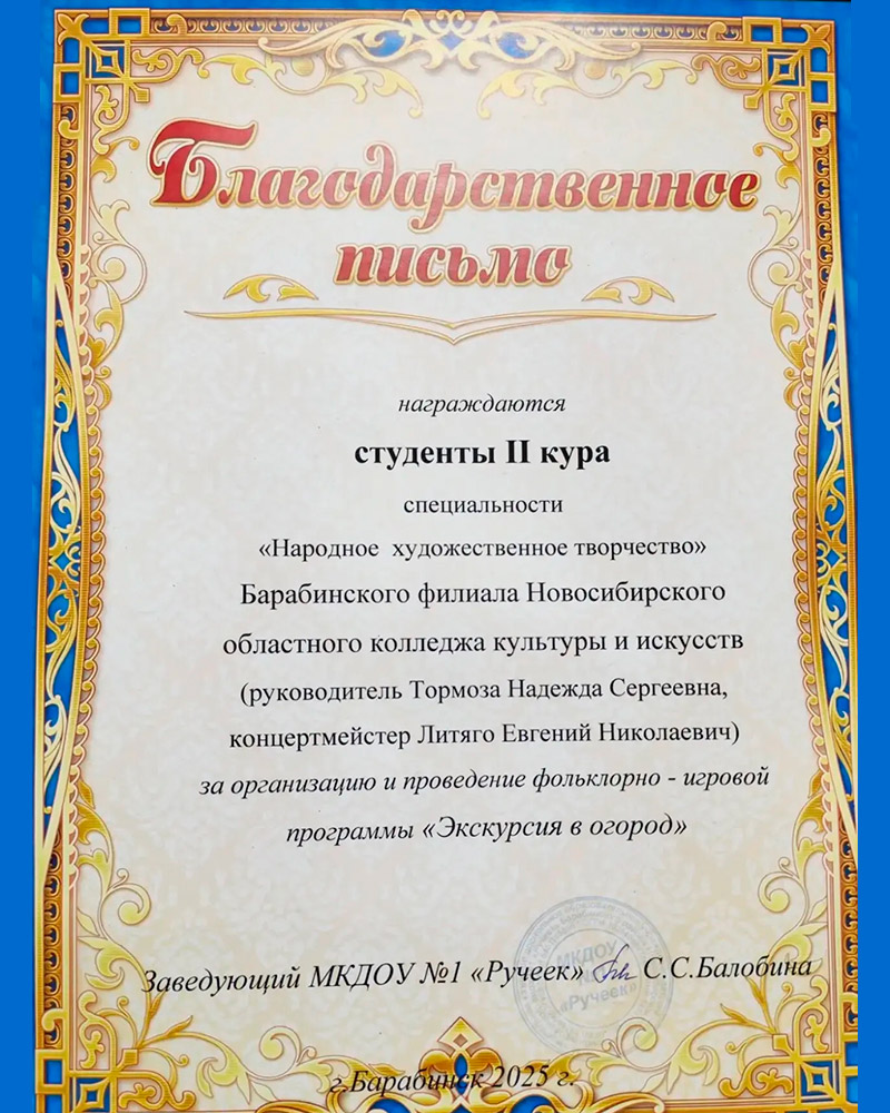 22 октября состоялась удивительная встреча воспитанников детского сада "Ручеек" и студентов Барабинского филиала НОККиИ!