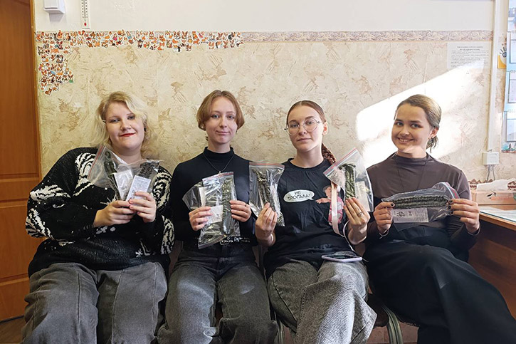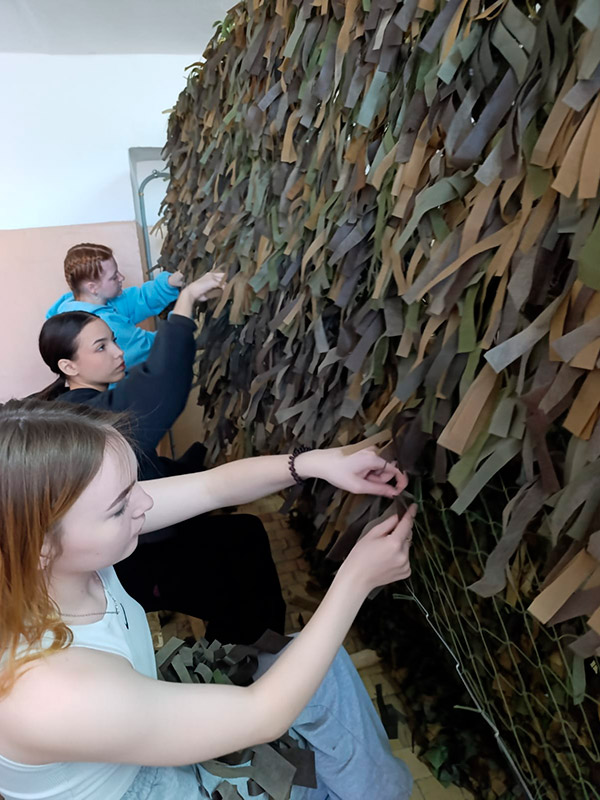 Также в течение всего учебного года студенты активно плетут маскировочные сети и тактические браслеты - всё для того, чтобы помочь нашим бойцам почувствовать тепло и поддержку дома.