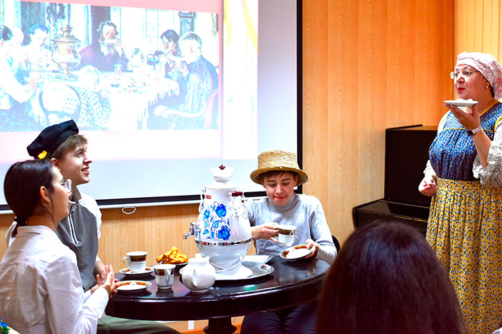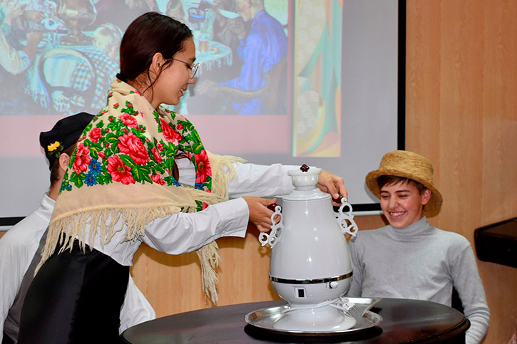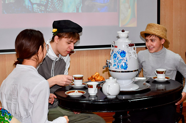 Ребята смогли узнать, как чай появился в России, какие традиции сложились вокруг него, и какую важную роль он играл в жизни людей разных эпох. Особое внимание уделили чайной утвари - самоварам, чайникам, чашкам - и узнали о символизме каждого предмета, который делал чаепитие особенным.