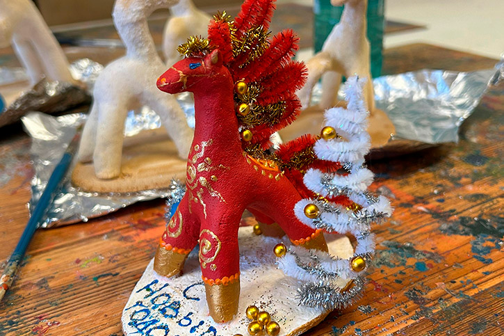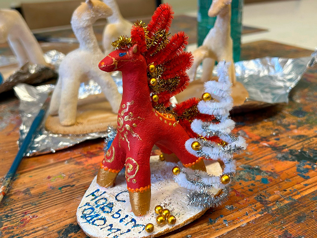 О.А.Митрохова поделилась секретами создания елочных игрушек и декоративных магнитиков, научив участников создавать оригинальные украшения для новогоднего праздника.