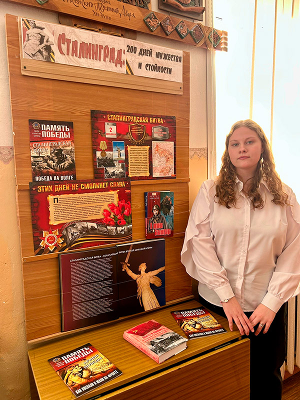 Особый интерес вызвало знакомство с печатным фондом: студенты ознакомились с выставкой книг, посвященных Сталинграду, где были представлены как документальные свидетельства, так и художественная литература о героизме солдат.