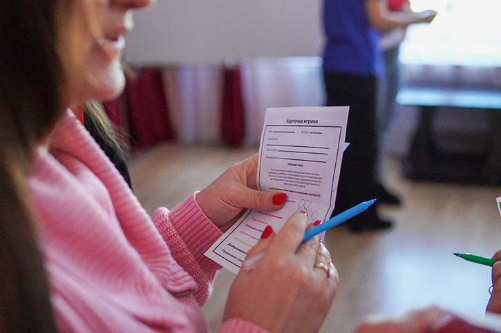Встреча продолжилась коммуникативной игрой "Обмен опытом: нескучный формат". Работа шла по специальным карточкам игроков, где участники прокачивали компетенции наставника: эмпатию, гибкость мышления, правовую грамотность и многие другие.