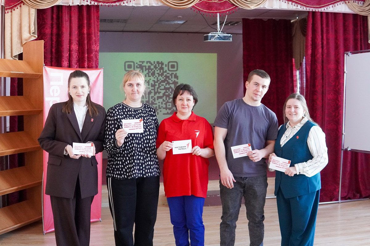 Финалом встречи стала торжественная церемония. Председатель Совета местного отделения Ирина Раздобарова посвятила кураторов новых первичных отделений в наставники Движения Первых. Поздравляем коллег с этим важным статусом!