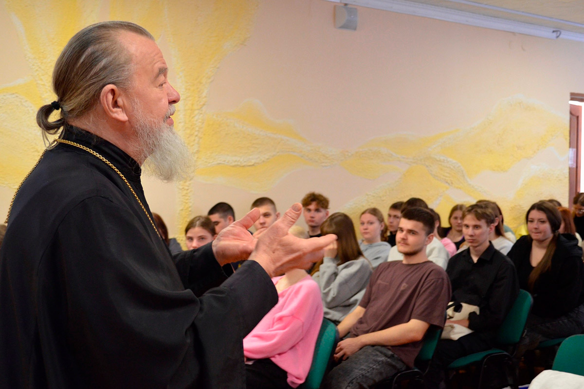 Встреча прошла в формате открытого диалога. Студенты активно включились в обсуждение и не стеснялись задавать личные вопросы, касающиеся повседневной жизни: о сквернословии, смысле Великого поста и о том, как сохранить духовные ориентиры в современном мире.