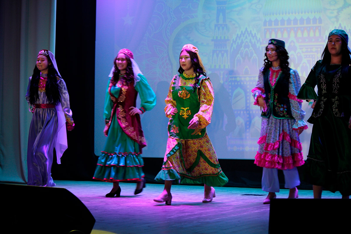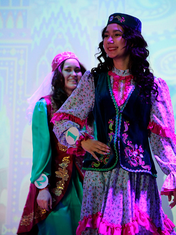 - Дефиле: грациозный выход в вечерних нарядах и традиционных татарских костюмах.
