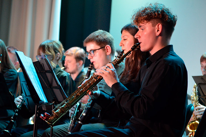 На сцене блистали творческие коллективы Барабинского филиала НОККиИ: эстрадно-духовой оркестр под управлением Алексея Гончарова и оркестр русских народных инструментов под управлением Анатолия Шевченко. Особую атмосферу праздника создали выступления солистов: Сергея Сотникова, Яны Губановой, Ксении Петрищевой, Людмилы Апанасенко, Дэниса Буртелова и мужского ансамбля "Бравые ребята".