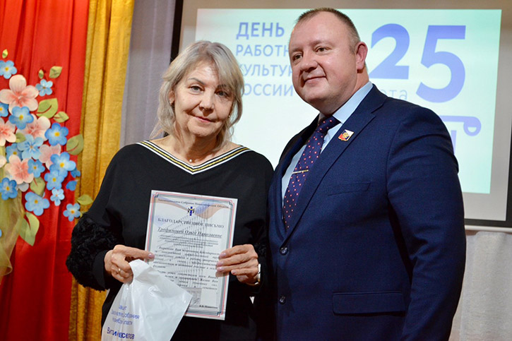С поздравительной речью к преподавателям, сотрудникам и студентам обратилась заведующая филиалом Марина Геннадьевна Калабугина. Она подчеркнула значимость нашей профессии, отметив, что труд работника культуры - это не просто работа, а настоящее призвание, требующее полной самоотдачи и искренности.